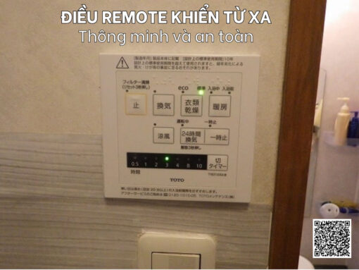 Máy sưởi thông gió nhà vệ sinh Toto TYB3111 đi kèm với remote từ xa không dây chống thấm nước, cho phép người dùng dễ dàng lựa chọn và cài đặt các chế độ (như hẹn giờ sưởi ấm) một cách an toàn ngay cả trong môi trường ẩm ướt của phòng tắm.