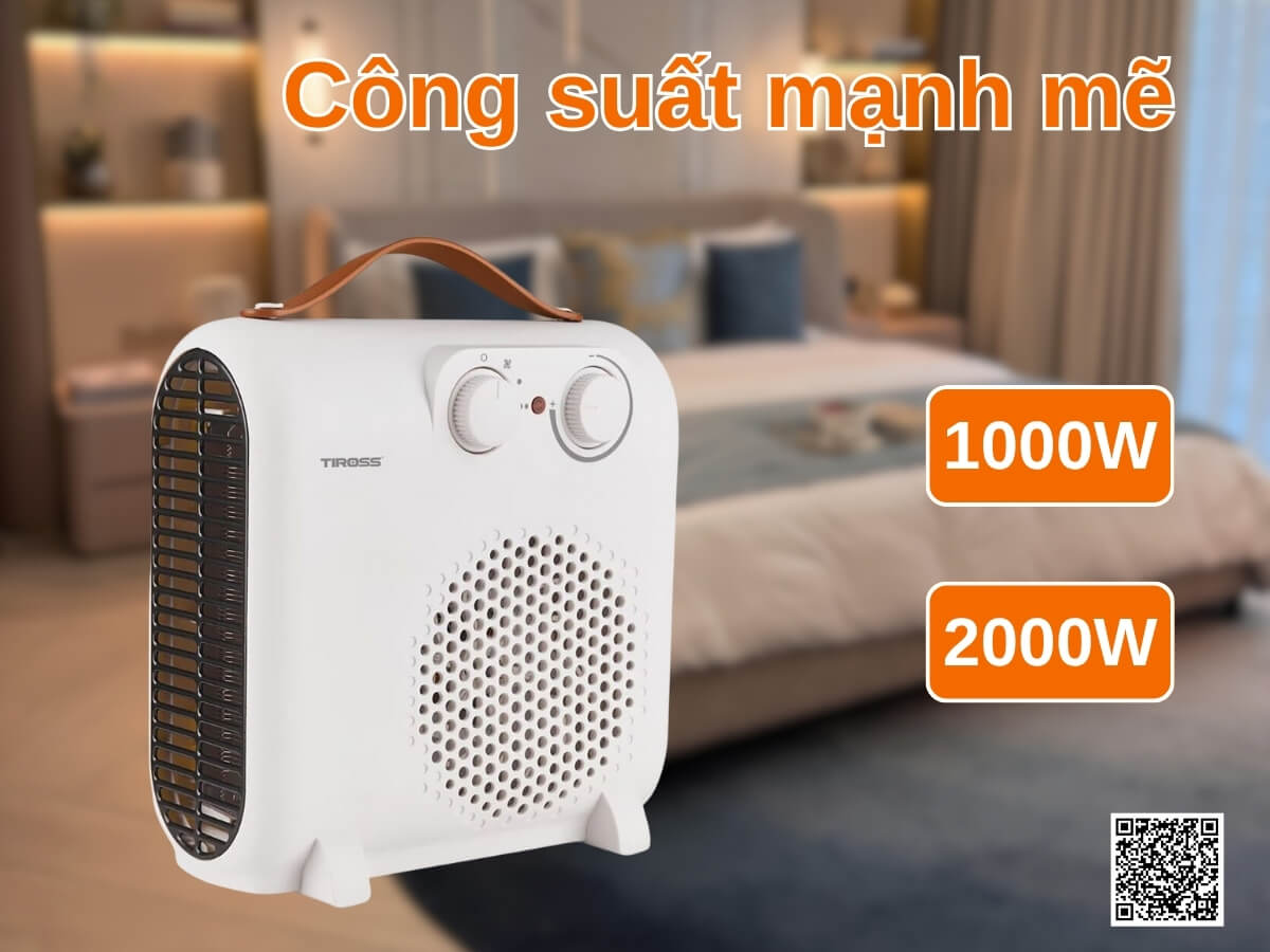 - Làm nóng nhanh: Công suất tối đa 2.000W cho khả năng làm ấm nhanh chóng trong vài phút.