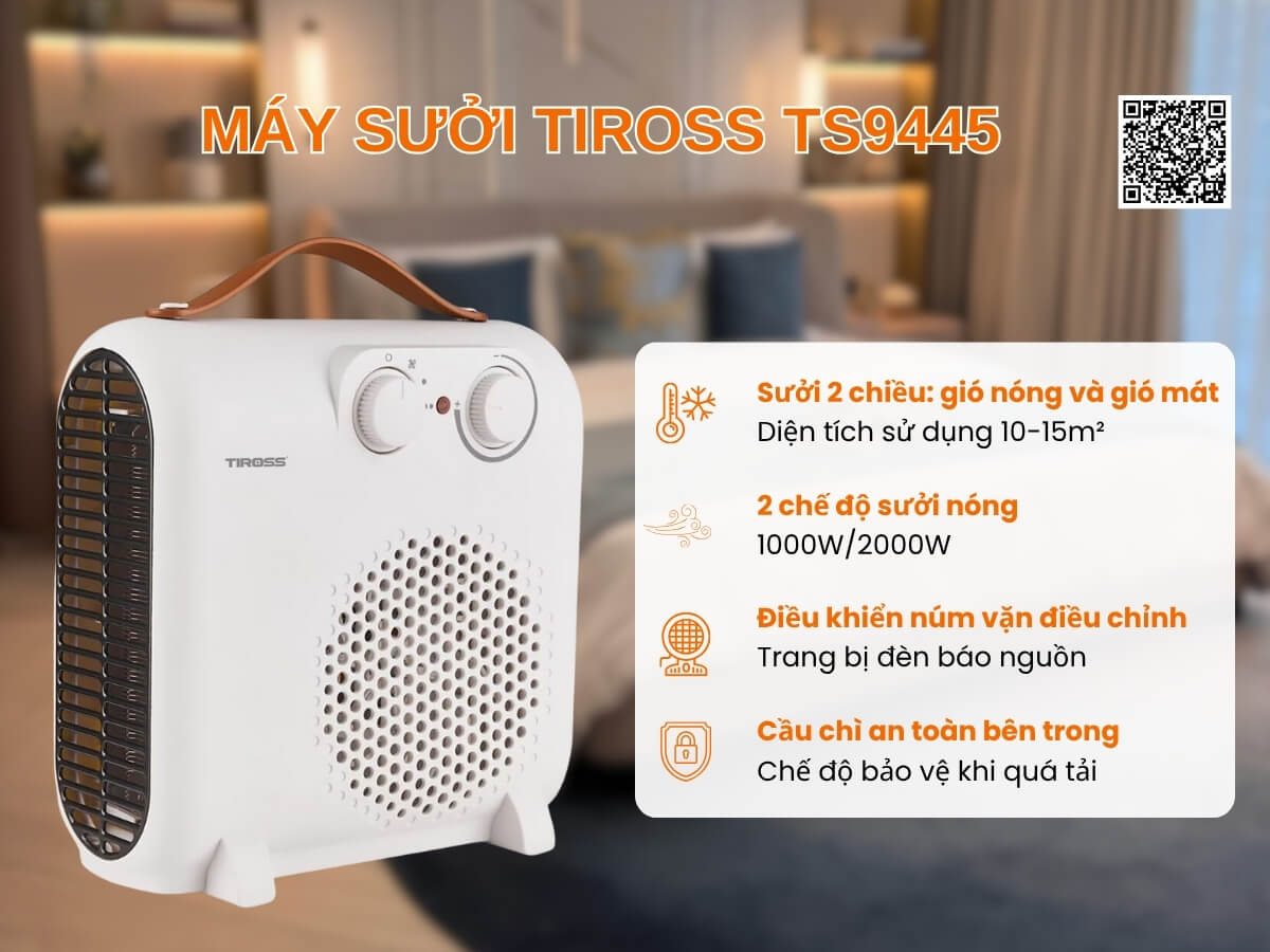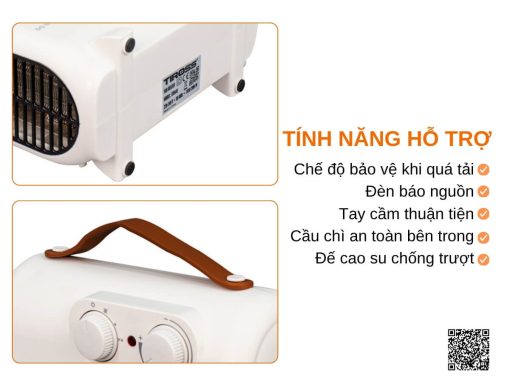 Máy sưởi Tiross TS9445 đi kèm nhiều tính năng an toàn và tiện lợi như: