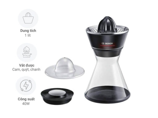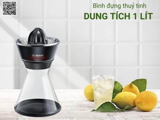 Máy vắt cam Bosch MCP72GPB thiết kế bình đựng thuỷ tinh sang trọng, dung tích 1 lít