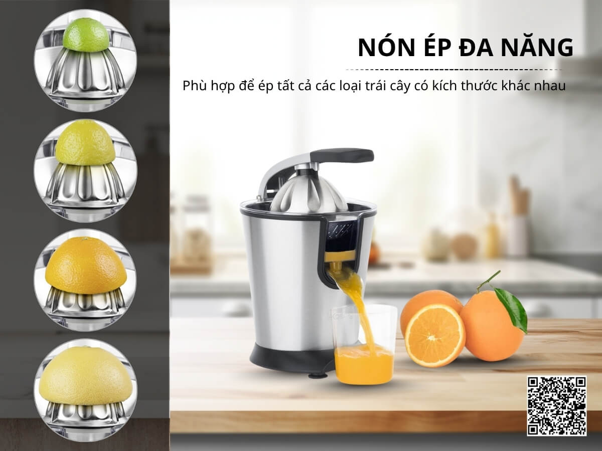 Nhờ chất liệu thép không gỉ cao cấp và cấu tạo vững chắc, nón ép không chỉ bền bỉ theo thời gian mà còn đảm bảo hương vị nước cam giữ được độ tươi tự nhiên và không lẫn vị kim loại. Dù bạn muốn ép nhanh cho bữa sáng hay chuẩn bị nước cam cho cả gia đình, CP330 Pro đều mang lại ly nước ép mịn, thơm và nguyên vị vitamin C mỗi ngày.