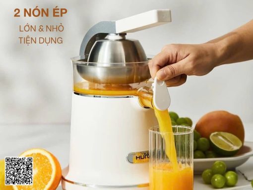 Máy vắt cam Hurom CJ-B03FWH trang bị 2 nón ép với kích cỡ lớn & nhỏ, phù hợp để ép nhiều loại cam, chanh, quýt, bưởi và cả chanh dây, tăng thêm trải nghiệm tiện dụng cho người dùng.