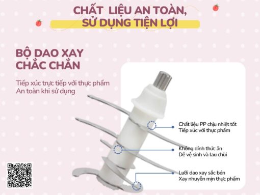 Máy xay ăn dặm Bear GR-B03V8 có thiết kế tháo rời thông minh, giúp việc vệ sinh trở nên dễ dàng và nhanh chóng. Người dùng có thể tháo rời cối, nắp và lưỡi dao để rửa sạch từng bộ phận, tránh bám cặn hay mùi thực phẩm. Với chất liệu thủy tinh trơn nhẵn và silicon chống dính, máy không lưu lại mùi thức ăn, giữ được độ mới lâu dài.