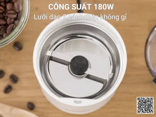 Công suất 180W cùng thiết kế lưỡi dao 2 cánh bằng thép không gỉ sắc bén, giúp xay cà phê thơm ngon hoàn hảo