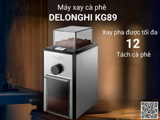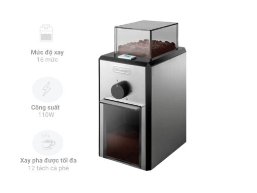 Máy xay cà phê DeLonghi KG89 sở hữu thiết kế sang trọng, kích thước nhỏ gọn, dễ dàng phù hợp với nhiều không gian từ gia đình đến văn phòng, khách sạn, quán cà phê sang trọng… Công suất 110W cùng thiết kế 2 bánh răng xay chuyên nghiệp giúp xay cà phê thơm ngon hoàn hảo. Có thể tuỳ chọn 16 mức độ mịn của cà phê để phù hợp pha nhiều loại cà phê khác nhau như espresso, cà phê kiểu Pháp, cà phê phin… Hộp chứa hạt cà phê dung tích 150g, hộp chứa bột cà phê dung tích 120g, có thể xay để pha được tối đa 12 tách cà phê. Điều khiển bằng 2 núm xoay đơn giản, dễ dàng sử dụng.