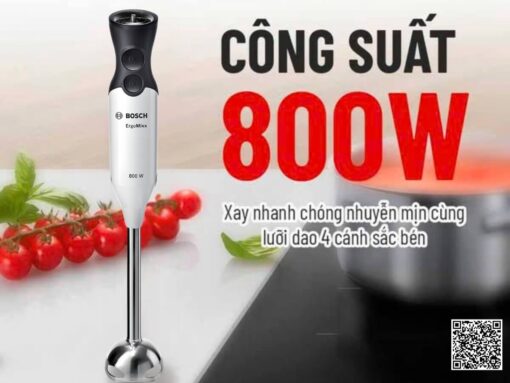 Máy xay cầm tay Bosch MS6CA4150G được trang bị công suất 800W mạnh mẽ giúp xay nhanh, tiết kiệm được nhiều thời gian.