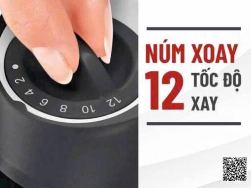 12 tốc độ xay và tốc độ tăng cường Turbo, điều chỉnh dễ dàng bằng nút nhấn và nút xoay