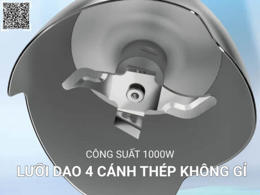 Công suất 1000W, lưỡi dao 4 cánh thép không gỉ sắc bén