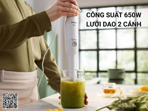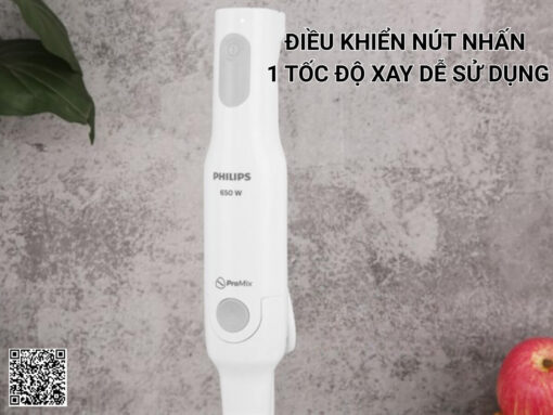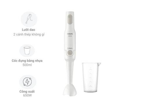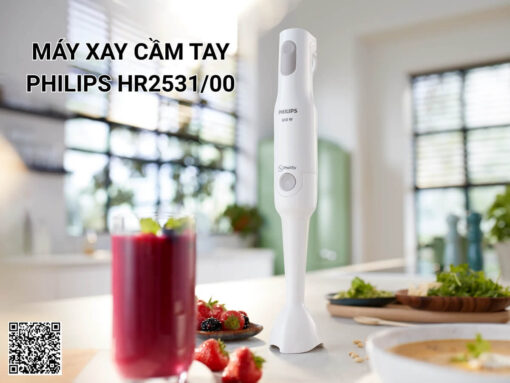 Máy xay cầm tay Philips HR2531/00 thiết kế nhỏ gọn, dễ sử dụng, có thể xay sinh tố, rau củ, xay cháo nóng… Đặc biệt là có thể xay trực tiếp trong nồi, ly, tô… tiện lợi. Công suất 650W mạnh mẽ cùng lưỡi dao 2 cánh thép không gỉ sắc bén, giúp xay nhanh và nhuyễn mịn mọi nguyên liệu. Điều khiển nút nhấn với 1 tốc độ xay dễ dàng sử dụng.