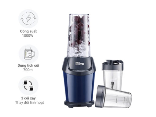Máy xay đa năng Olivo MB1000 trang bị 3 cối xay, có thể xay sinh tố, xay đá, xay smoothie, xay khô. Công suất 1000W mạnh mẽ cùng thiết kế lưỡi dao 6 cánh thép không gỉ sắc bén, giúp xay nhanh và nhuyễn mịn thực phẩm.