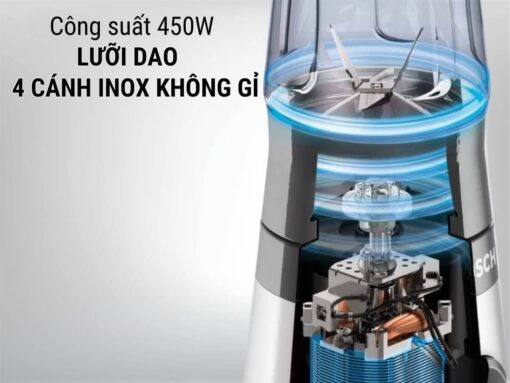Công suất 450W, lưỡi dao 4 cánh inox không gỉ xay khoẻ và nhuyễn mịn