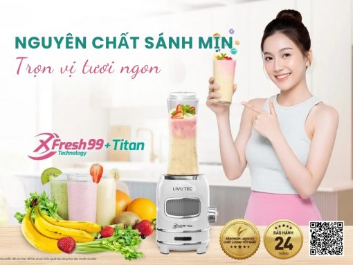 Máy xay sinh tố Livotec LVB-522W được trang bị công nghệ XFresh99+Titan – bí quyết tạo nên sự khác biệt của dòng sản phẩm này. Công nghệ tiên tiến giúp xay nhuyễn mịn nguyên liệu, giữ lại tối đa 99% dưỡng chất và vitamin tự nhiên trong trái cây, rau củ. Nhờ đó, ly sinh tố sau khi xay có kết cấu sánh mịn, hương vị tươi ngon và giữ nguyên màu sắc tự nhiên. Đây là lựa chọn lý tưởng cho những ai yêu thích thức uống healthy, vừa thơm ngon vừa tốt cho sức khỏe mỗi ngày.
