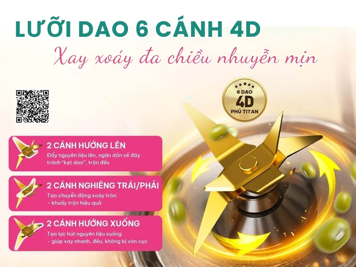 Lưỡi dao 4D phủ Titanium sắc bén, xay mịn mọi nguyên liệu