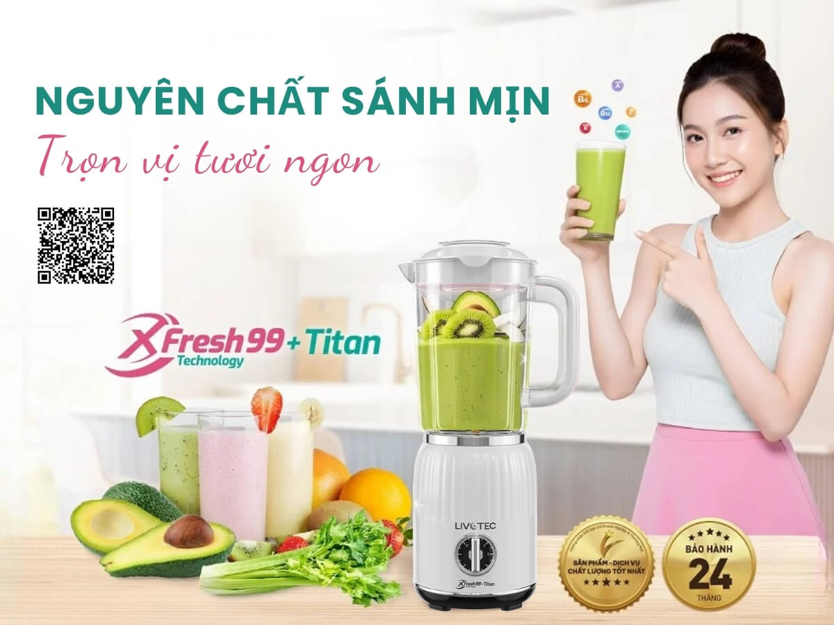 Điểm nổi bật nhất của Livotec LVB-622W chính là công nghệ XFresh99+Titan, được phát triển nhằm giảm tối đa lượng nhiệt sinh ra trong quá trình xay. Nhờ đó, thực phẩm được bảo toàn hầu hết vitamin, khoáng chất và hương vị tự nhiên. Khi hoạt động, máy tạo ra chuyển động xoáy mạnh mẽ giúp nghiền mịn mọi nguyên liệu, tạo nên hỗn hợp đồng nhất, sánh mịn và tươi ngon đến 99%. Với LVB-622W, bạn có thể dễ dàng chế biến những ly sinh tố thanh mát, nước ép nguyên chất hay các món xay nhuyễn khác mà vẫn đảm bảo độ tươi ngon.