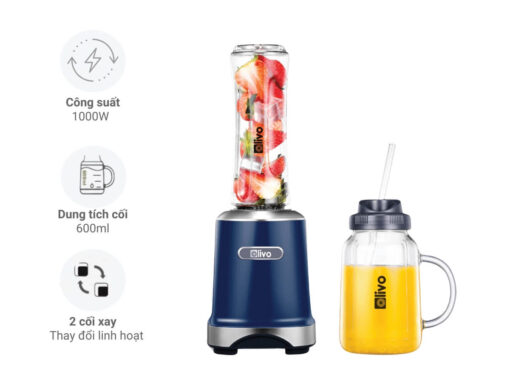 Olivo MB1000 trang bị 2 cối xay, 1 cối xay chính và 1 cối xay uống có nắp đậy với khe cắm ống hút, có thể xay sinh tố, smoothie và mang theo sử dụng mà không cần phải rót ra bình chứa khác, đem đến sự tiện dụng tối đa cho người dùng. Mỗi cối xay có dung tích 600ml đủ dùng cho nhu cầu cá nhân.