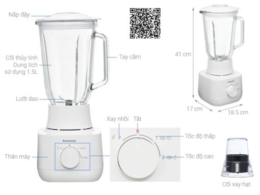 Máy xay sinh tố Panasonic MX-EG5311WRA trang bị 2 cối xay riêng biệt với chức năng đa dạng, đáp ứng nhu cầu sử dụng của mọi gia đình.