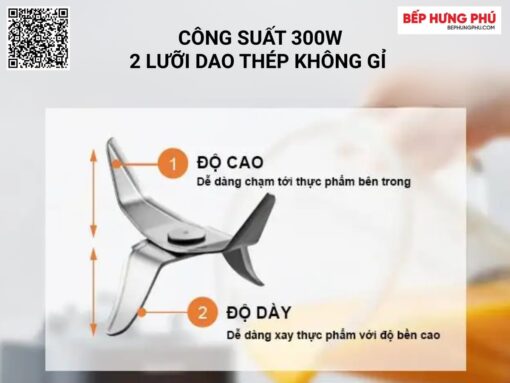 Công suất 300W, 2 lưỡi dao thép không gỉ xay khoẻ và nhuyễn mịn