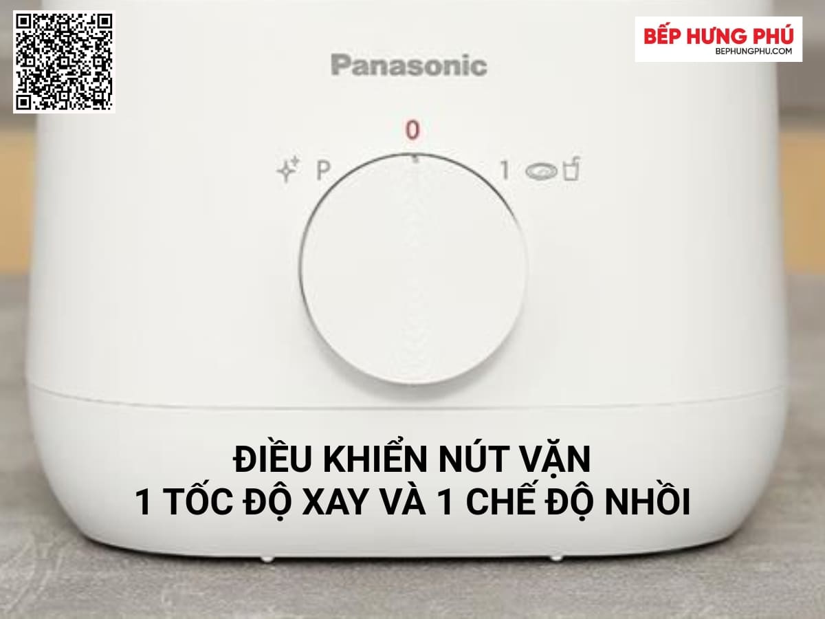 Máy xay sinh tố Panasonic MX-EP3111WRA thiết kế 1 nút vặn để điều khiển máy, bố trí ngay mặt trước thân máy giúp dễ dàng quan sát và điều khiển máy. Có 1 tốc độ xay và 1 chế độ nhồi đủ đáp ứng nhu cầu sử dụng của gia đình. Bạn có thể dễ dàng lựa chọn các chế độ chỉ với thao tác vặn nhẹ nút.