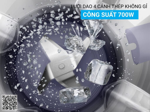 Công suất 700W, lưỡi dao 4 cánh thép không gỉ xay khoẻ và nhuyễn mịn