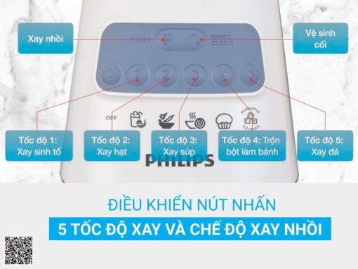 Điều khiển nút nhấn, 5 tốc độ xay và chế độ xay nhồi