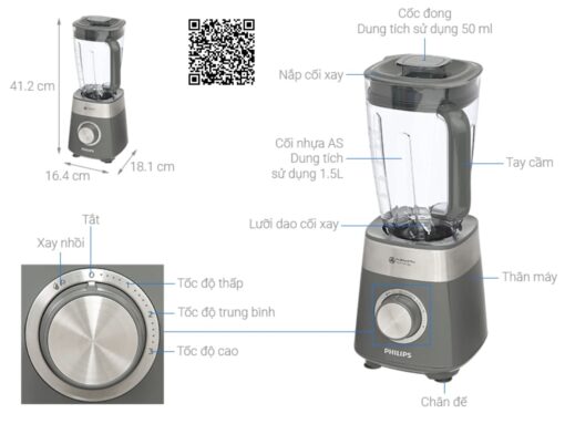 Chi tiết các bộ phận máy xay sinh tố Philips HR3020/20