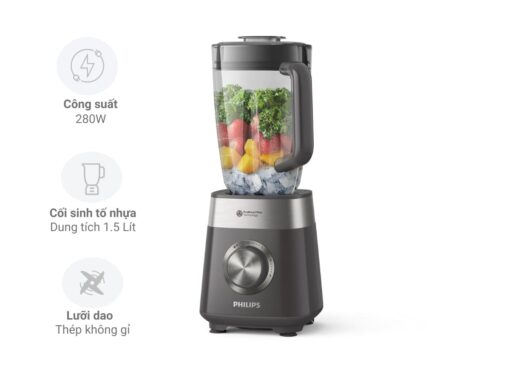 Máy xay sinh tố Philips HR3020/20 trang bị cối xay dung tích lớn 1.5 lít, chất liệu nhựa AS cao cấp, an toàn. Công suất 1000W mạnh mẽ kết hợp với lưỡi dao 4 cánh thép không gỉ sắc bén giúp xay nhanh và khoẻ các nguyên liệu. Bạn có thể thoải mái xay sinh tố, xay rau củ, xay đá… Có 3 tốc độ xay và 1 chế độ nhồi, điều khiển bằng núm vặn đơn giản, dễ dàng sử dụng.