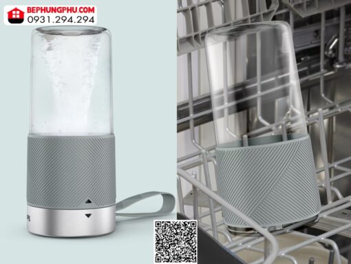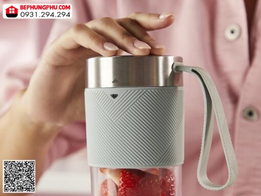 Cối xay bằng nhựa trong suốt, đẹp mắt, đặc biệt có bọc silicon chống trơn trượt, cầm nắm chắc chắn hơn, màu ghi tối giản, sang trọng. Nắp bằng thép không gỉ Cromargan 18/10 sáng bóng, chống gỉ, tăng thêm thẩm mỹ cho sản phẩm. Ngoài ra còn có quai xách tăng thêm tiện lợi cho người dùng.