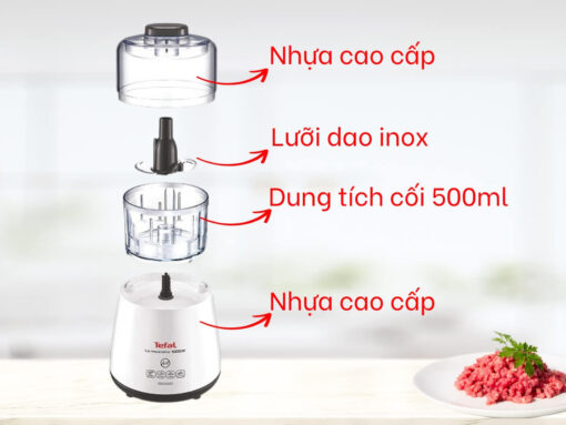 Máy xay thịt Tefal DPA130 trang bị cối xay nhựa cao cấp, bền chắc, an toàn vệ sinh thực phẩm và dễ vệ sinh. Cối có dung tích 500ml giúp xay được nhiều thực phẩm trong mỗi lần xay, tiết kiệm được thời gian và công sức. Bạn có thể xay ớt tỏi, rau củ, xay thịt, hạt dinh dưỡng… tiện dụng.