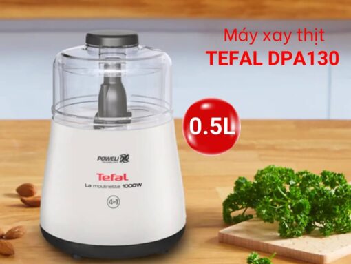 Máy xay thịt Tefal DPA130 trang bị công suất mạnh mẽ 1000W, cùng lưỡi dao 2 cánh inox thiết kế cải tiến, giúp xay khoẻ và nhuyễn mịn thực phẩm, xay thịt, xay tỏi ớt, rau củ… nhanh chóng, tiện lợi. Cối nhựa cao cấp, bền chắc, dung tích 500ml có thể xay được nhiều thực phẩm. Điều khiển dễ dàng bằng cách ấn nắp máy để xay và thả ra để ngừng xay. Đặc biệt máy có tính năng tự động ngắt khi quá nhiệt, đảm bảo an toàn cho thiết bị.