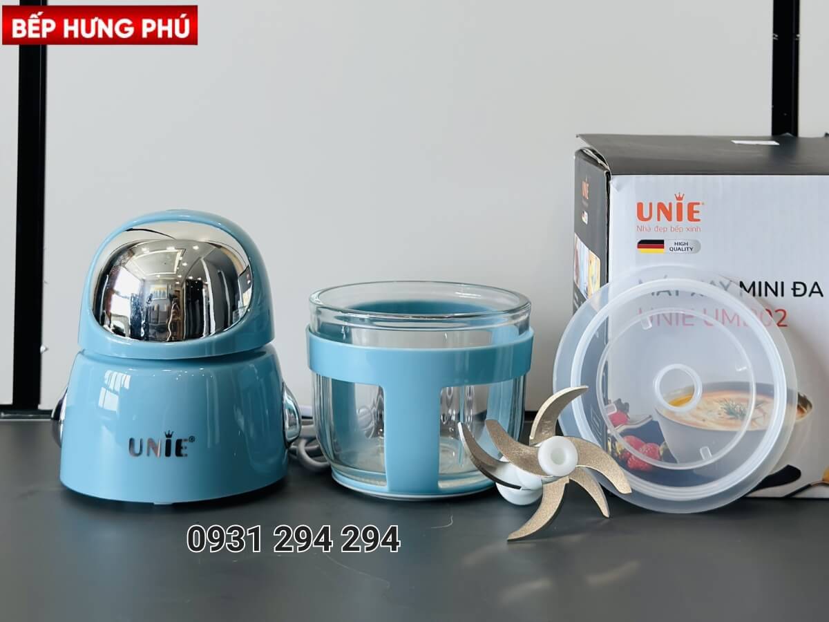 Máy xay thịt Unie UMB02 thiết kế cối mini đa năng, có thể dùng xay thịt, cá, tỏi ớt, rau củ, xay đồ ăn dặm cho bé… Cối thuỷ tinh cao cấp, kháng khuẩn an toàn, cùng lưỡi dao inox 304 sắc bén giúp xay nhanh và nhuyễn mịn nhiều loại thực phẩm khác nhau.