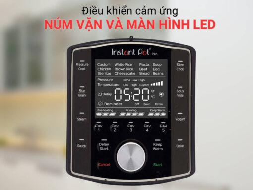 Nồi áp suất điện Instant Pot Pro 10in1 thiết kế bảng điều khiển cảm ứng điều khiển đơn giản, dễ sử dụng, các chế độ nấu và chức năng được thể hiện rõ ràng, dễ quan sát, thao tác chỉ cần chạm nhẹ đơn giản. Cùng với đó là một núm vặn để điều chỉnh nhiệt độ, thời gian nấu theo ý muốn. Và màn hình LED sẽ hiển thị thông tin về thời gian nấu để bạn dễ dàng quan sát và điều khiển nồi.