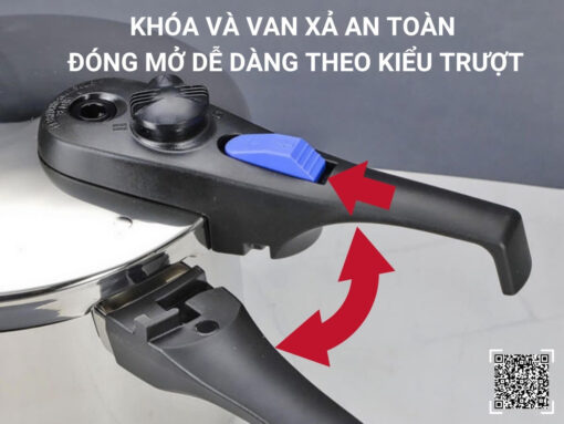• Hệ thống khóa và van xả áp suất an toàn, đóng mở dễ dàng theo kiểu trượt
