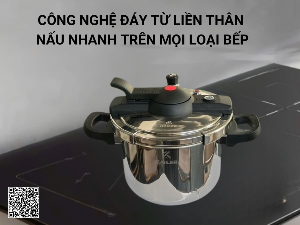 Nồi áp suất Kailer KL-AS22 sử dụng công nghệ đáy từ liền thân giúp truyền nhiệt siêu nhanh và tản nhiệt đều khắp đáy nồi. Nhờ đó giúp món ăn được nấu chín mềm một cách nhanh chóng, tiết kiệm năng lượng và giảm đến 50% thời gian nấu so với nồi thường, đồng thời vẫn bảo toàn được dinh dưỡng vốn có trong món ăn. Đặc biệt, nồi dùng được trên mọi loại bếp, kể cả bếp từ kén nồi.
