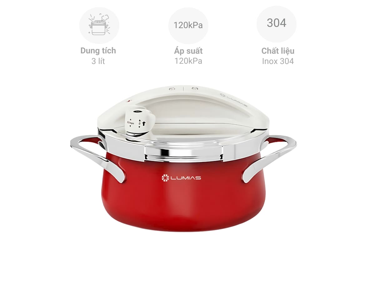 Nồi áp suất Lumias LPC-068 có dung tích 3 lít, là lựa chọn lý tưởng cho các gia đình. Nồi sở hữu thiết kế đẹp mắt, hiện đại với tông màu đỏ nổi bật và tràn đầy năng lượng, không chỉ là một dụng cụ nấu nướng mà còn là điểm nhấn đầy phong cách, thắp sáng không gian bếp của bạn. Đặc biệt, thiết kế nhỏ gọn nhưng đa năng giúp bạn dễ dàng chế biến nhiều món ăn từ cháo gà thơm lừng, bò kho đậm đà, đến đậu hầm mềm tơi… Tất cả đều gọn nhẹ và nhanh chóng.