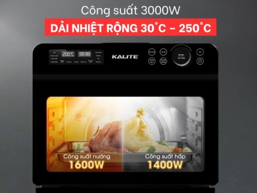 Nồi chiên hơi nước Kalite Steam Fusion Pro được trang bị tổng công suất 3000W mạnh mẽ, trong đó công suất nướng 1600W và công suất hấp 1400W, giúp chế biến các món ăn nhanh chóng, tiết kiệm thời gian, dù là món chiên nướng hay hấp. Cùng dải nhiệt rộng 30°C – 250°C, phù hợp với nhiều loại thực phẩm và cách chế biến khác nhau, để đảm bảo rằng món ăn của bạn được nấu với mức nhiệt chính xác nhất và cho thành quả thơm ngon chuẩn vị.
