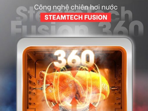 Công nghệ chiên hơi nước SteamTech Fusion là một công nghệ mang tính đột phá đỉnh cao mà bạn không nên bỏ qua, đó là sự kết hợp giữa chiên không dầu và hấp. Thực phẩm sẽ được nấu chín bằng khí nóng đối lưu kết hợp với hơi nước nóng. Công nghệ chiên hấp kết hợp giúp món ăn giòn tan bên ngoài và ngọt mềm bên trong. Chức năng này khắc phục được tình trạng món ăn bị khô khi nấu bằng nồi chiên không dầu thông thường.