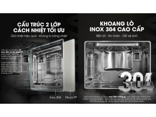 Cấu trúc 2 lớp cách nhiệt và khoang lò Inox 304 cao cấp