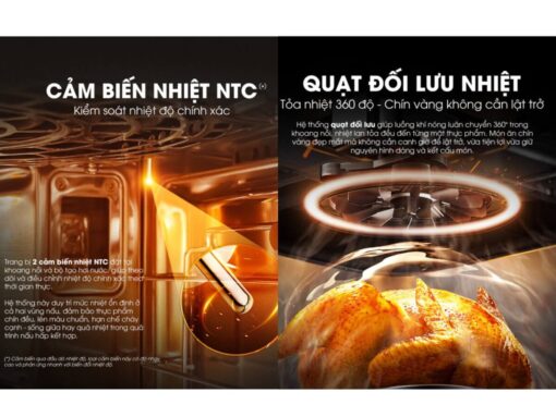 Kết hợp cùng đó là quạt đối lưu nhiệt xoay 360°, phân bổ luồng hơi nóng đồng đều khắp khoang lò. Không khí nóng được lưu chuyển liên tục giúp bề mặt món ăn chín vàng giòn, trong khi bên trong vẫn mềm ngọt, mọng nước. Nhờ công nghệ này, Nồi chiên hơi nước Kalite Vapor 4in1 mang đến món ăn không chỉ ngon miệng mà còn giữ trọn hương vị và giá trị dinh dưỡng, đồng thời tiết kiệm thời gian nấu nướng so với cách truyền thống.