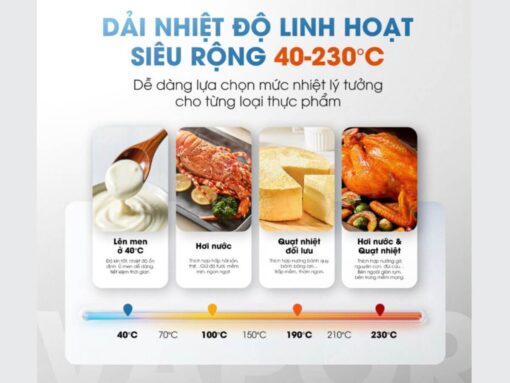 Dài nhiệt độ linh hoạt siêu rộng 40 – 230°C, đáp ứng mọi nhu cầu nấu nướng