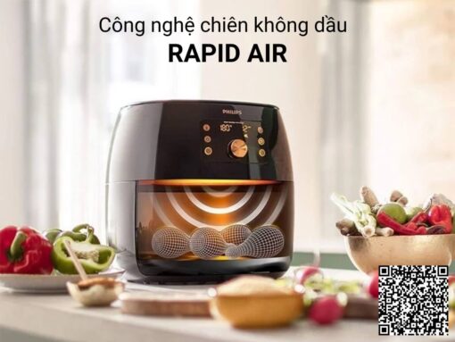 Công nghệ chiên không dầu Rapid Air cung cấp luồng không khí nóng đối lưu cho nhiệt lượng trong lò lan tỏa đều để chín đều thực phẩm mà không cần trở lật. Món ăn được chế biến với công nghệ chiên không dầu này vẫn đảm bảo độ vàng giòn bên ngoài, chín đều bên trong và lại giảm được lượng calo, dầu mỡ đến 90% so với phương pháp chiên dầu truyền thống. Nhờ đó tạo ra món ăn lành mạnh, chống ngấy và tốt cho sức khoẻ, đặc biệt là với những người ăn kiêng giảm béo.