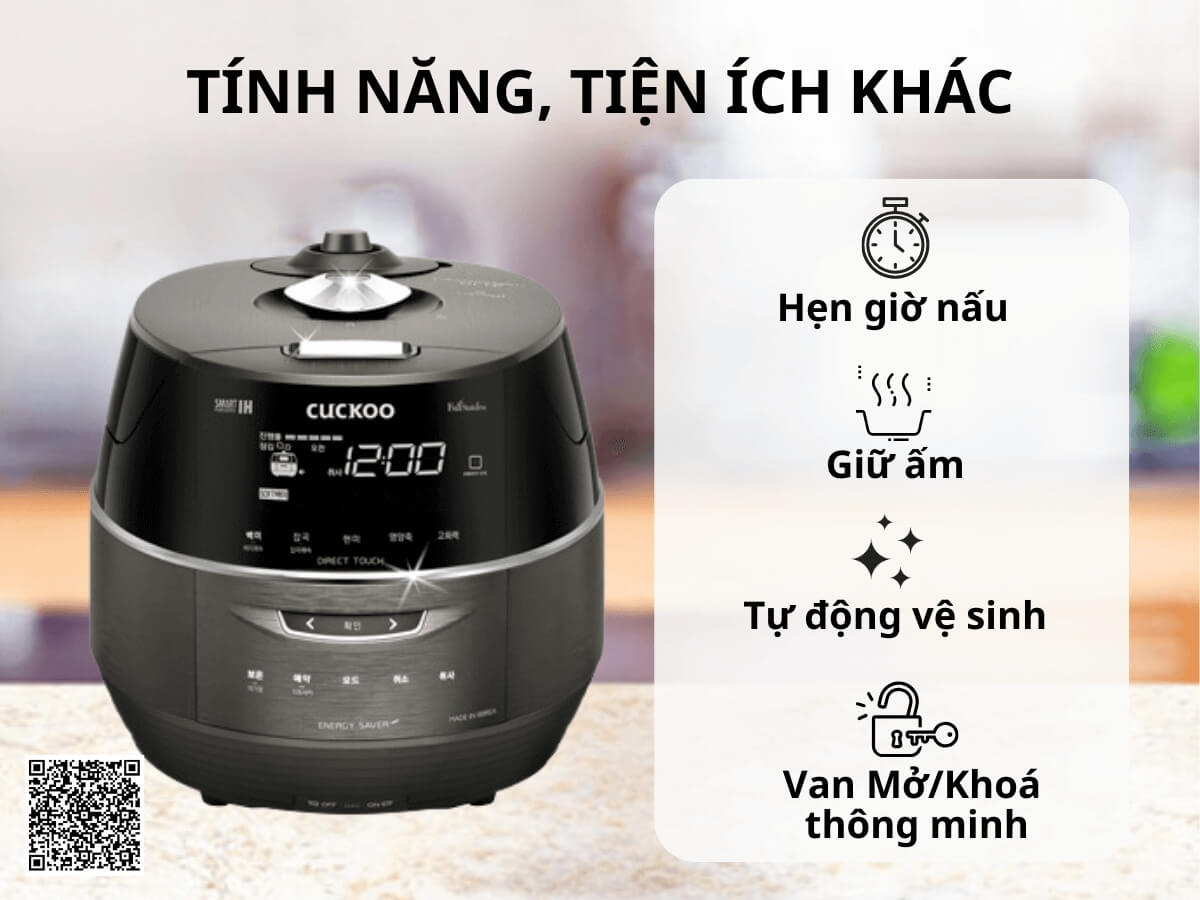- Tính năng Tự động vệ sinh Auto Steam Cleaning tự động vệ sinh diệt khuẩn và làm sạch nồi chỉ với 1 nút ấn, tiết kiệm nhiều công sức lau chùi và khử mùi khi nấu các món khác nhau.