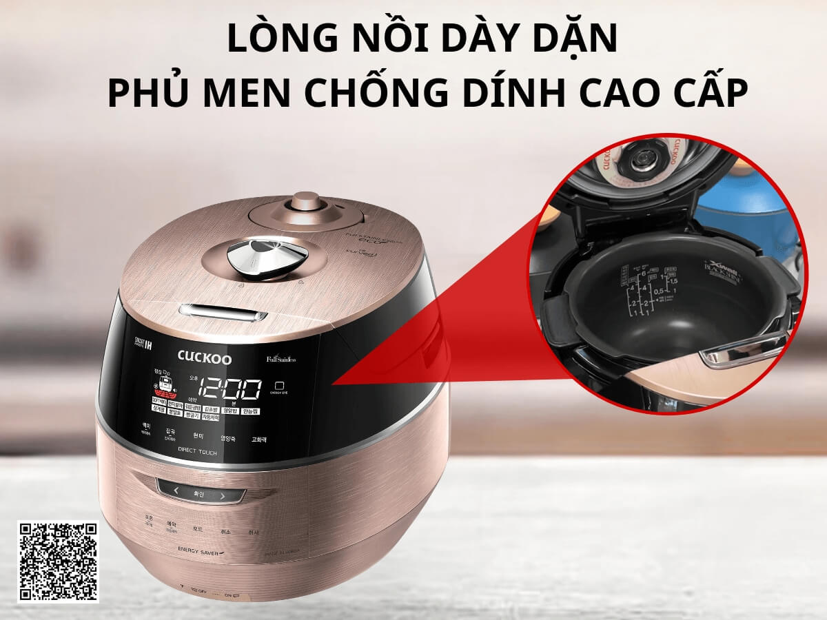 Cuckoo là thương hiệu tiên phong ứng dụng công nghệ nấu cao tần cảm ứng từ (IH) kết hợp cùng áp suất 2 atm, mang lại hiệu quả nấu vượt trội. Thay vì làm nóng gián tiếp như nồi cơm điện thông thường, công nghệ cảm ứng từ làm nóng trực tiếp từ trong lòng nồi, giúp nhiệt lan tỏa đều và ổn định hơn.