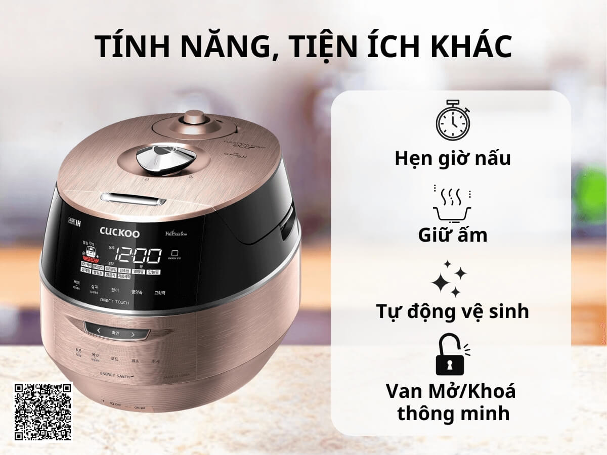 - Tính năng Tự động vệ sinh Auto Steam Cleaning tự động vệ sinh diệt khuẩn và làm sạch nồi chỉ với 1 nút ấn, tiết kiệm nhiều công sức lau chùi và khử mùi khi nấu các món khác nhau.