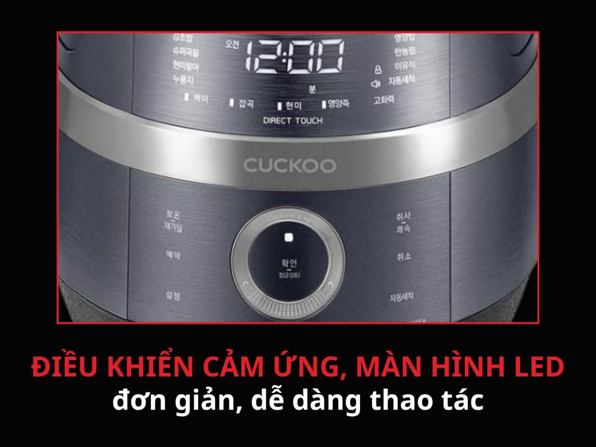 Nồi cơm điện cao tần Cuckoo CRP-JHR1010FC được trang bị hệ thống điều khiển cảm ứng có màn hình LED hiển thị, giúp tăng tính hiện đại và tiện lợi cho sản phẩm.