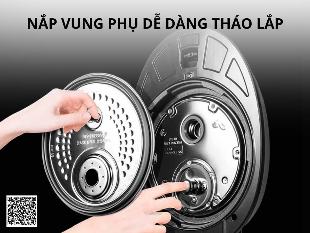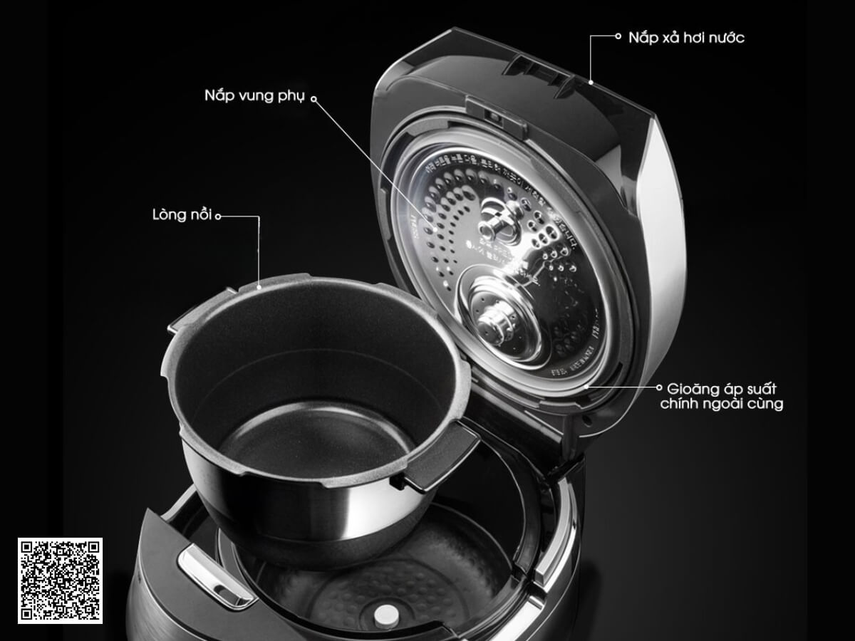 – Công nghệ nấu áp suất cao tạo ra đối lưu nhiệt với áp suất cực cao lên đến 2atm. Cung cấp mức nhiệt cực lớn và giữ hơi nóng không thoát ra ngoài, giúp món ăn được chín mềm nhanh chóng nhưng vẫn đảm bảo giữ trọn dinh dưỡng trong món ăn. Công nghệ nấu áp suất cao rất hữu ích khi nấu các loại hạt cứng như ngũ cốc, đậu, gạo lứt, và nấu các món ninh, hầm, gà tần…