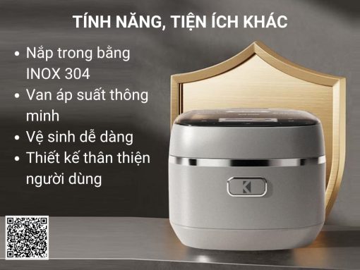 • Van vi áp thông minh: Thiết kế ngàm đôi thông minh giúp giữ kín áp suất trong quá trình nấu, làm cơm chín sâu và ngon hơn.