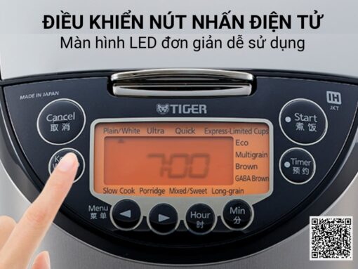 Nồi cơm điện cao tần Tiger JKT-F18W được trang bị hệ thống điều khiển nút nhấn điện tử có màn hình LCD hiển thị, giúp tăng tính hiện đại và tiện lợi cho sản phẩm.