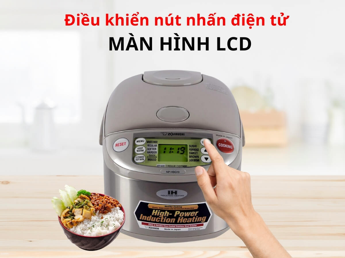Nồi cơm điện cao tần Zojirushi NP-HBQ10 được trang bị hệ thống điều khiển nút nhấn điện tử và màn hình hiển thị LCD. Các chức năng được thể hiện rõ ràng, dễ đọc, dễ thao tác. Cùng với màn hình LCD hiển thị rõ ràng, sắc nét… giúp bạn dễ dàng theo dõi thông tin hoạt động của nồi.