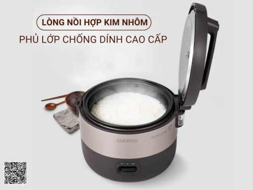 Lòng nồi của Nồi cơm điện Cuckoo CR-1755/KBBKCRVN được làm từ chất liệu hợp kim nhôm, kết cấu dày dặn, cứng cáp, hạn chế méo móp, biến dạng do va chạm hay rơi rớt. Đồng thời tăng khả năng giữ ấm cho cơm.