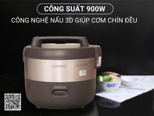 Nồi cơm điện Cuckoo CR-1755/KBBKCRVN ứng dụng công nghệ nấu 3D với 3 mâm nhiệt, cung cấp nhiệt lượng toả đều trong lòng nồi: từ đáy nồi lên trên, từ nắp nồi xuống và quanh thành nồi, giúp nấu cơm được nấu chín đều. Cùng với công suất 900W giúp nấu cơm nhanh chóng, tiết kiệm thời gian.